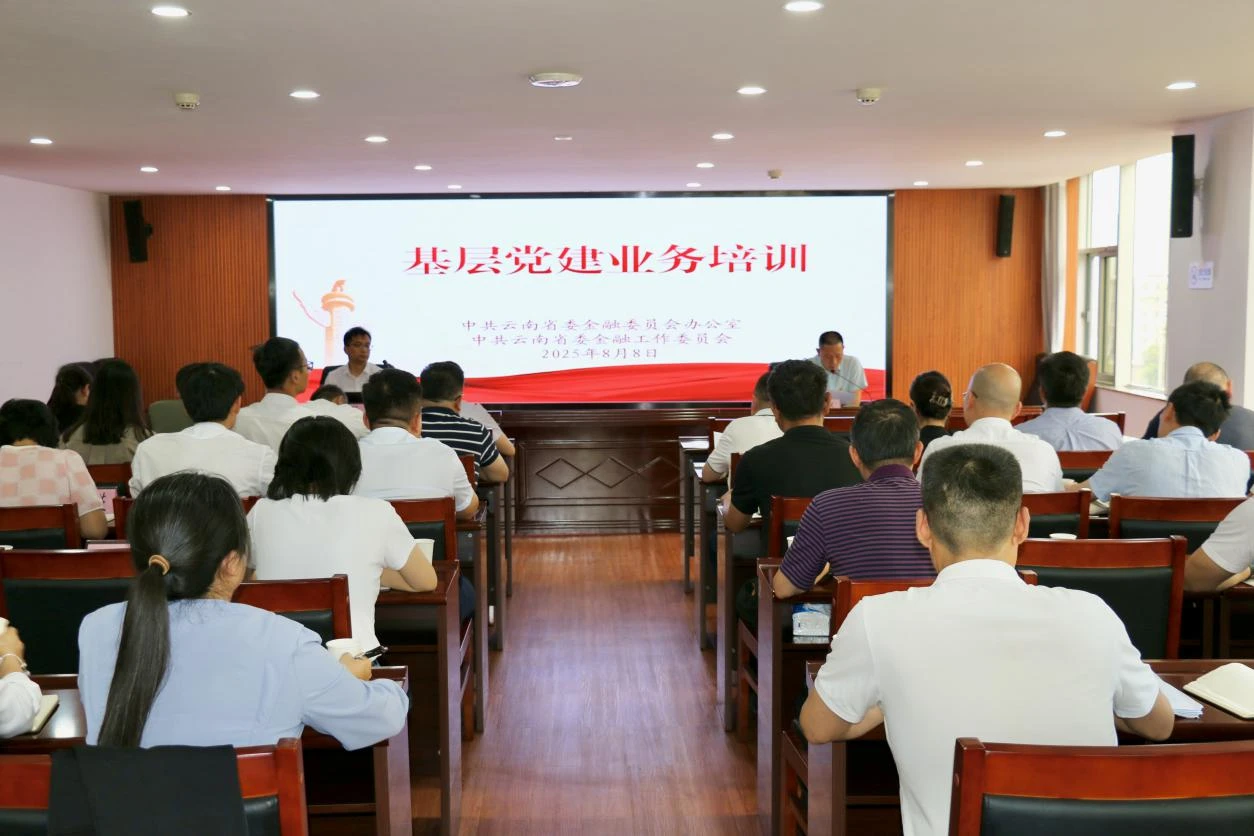 8月8日,省委金融办、省委金融工委举办基层党建业务培训班,邀请省级机关党校副校长周磊同志围绕“以高质量党务工作推动机关基层党的建设高质量发展”进行专题授课。省委金融办、省委金融工委,富滇银行、省农村信用社联合社、诚泰保险、红塔银行、云南国际信托、邮储银行云南省分行、太平洋证券等7家党组织关系归口管理的金融机构以及云南省小额信贷协会、担保协会的党务工作者和党员干部参加培训。