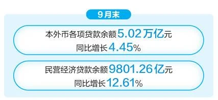 民营经济贷款增长较快。9月末,全省民营经济贷款余额9801.26亿元,同比增长12.61%。同时,重点领域中长期贷款稳定增长,9月末,全省基础设施业中长期贷款余额1.58万亿元,同比增长7.39%;制造业中长期贷款余额1706.4亿元,同比增长6.86%。房地产贷款持续正增长。9月末,全省房地产贷款余额9316.27亿元,同比增长0.38%,连续10个月正增长。其中,个人住房贷款余额同比增长1.2%,增幅持续扩大。