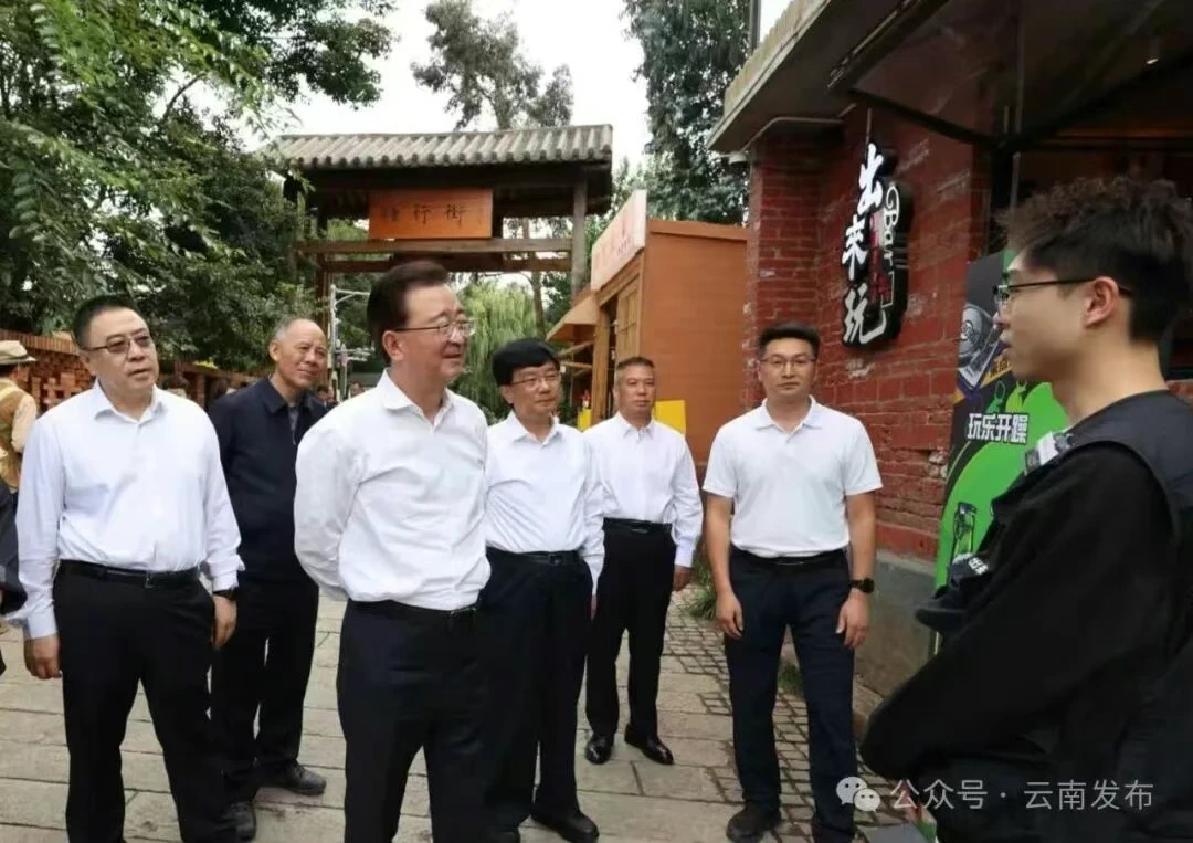 8月26日,王宁在曲靖市麒麟区西门街片区调研城市更新改造,与创业者、城市管理者交流探讨。周灿 摄