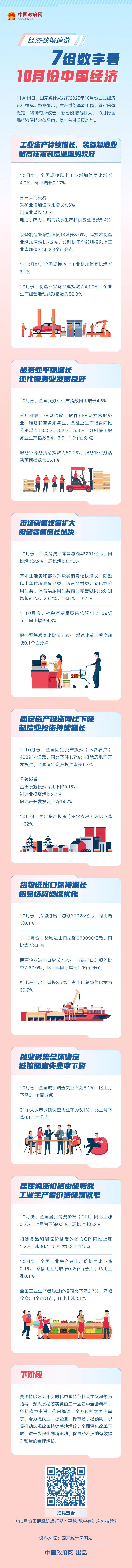 经济数据速览:7组数字看10月份中国经济