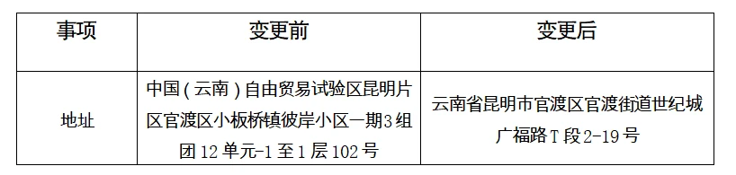 经审查,你公司申请变更地址,符合法定形式,准予变更。变更事项如下: