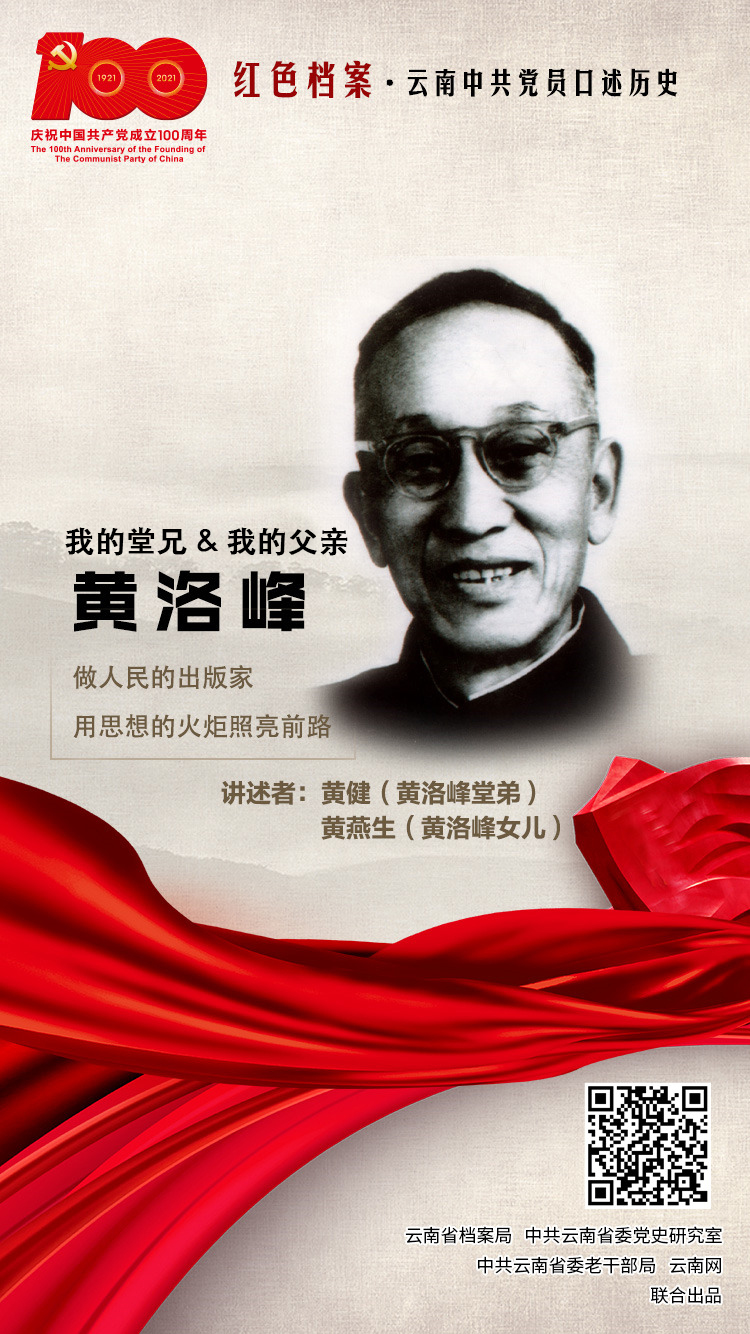 时间回到1927年的云南省立一中(昆一中),18岁的黄洛峰在这里加入了中国共产党。据黄健回忆,在与李国柱、万国全、艾思奇等进步人士的接触中,黄洛峰对共产党宣言、马克思主义进步思想有了极大的兴趣,随之而来的是思想上的改变。次年,黄洛峰被任命为中共云南易门、安宁、禄丰三县特委书记;1930年留学日本,1931年“九一八”事变后,毅然回国投入抗日运动。